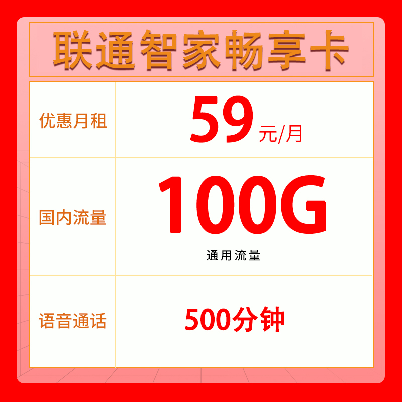 59元100G全国流量,500分钟通话,宽带500M