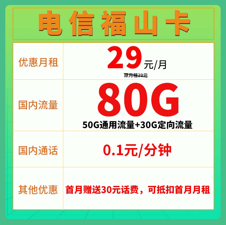 电信福山卡(发全国)